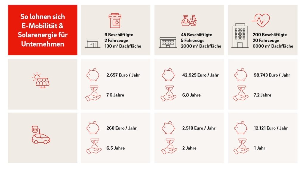 Mit diesen staatlichen Förderungen lohnen sich nachhaltige Investments umso mehr. Besonders in Kombination mit eigenem PV-Strom und eigener Ladeinfrastruktur können Unternehmen laut E.ON mit jährlichen Einsparungen von bis zu 100.000 € rechnen. Die übersichtliche Rechnung zeigt, wie positiv diese nachhaltigen Investments sich für Unternehmen auswirken.